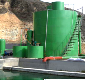 超级竖流溶气气浮污水处理机为钢制结构,其工作原理是:空气通过泵送入压力溶气罐,在0. 5Mpa压力下被强制溶解在水中,在突然释放的情况下,溶解在水中的空气析出,形成大量的微气泡群在缓慢上升过程中吸附在悬浮物密度下降而上浮,达到去除SS和CODcr的目的。